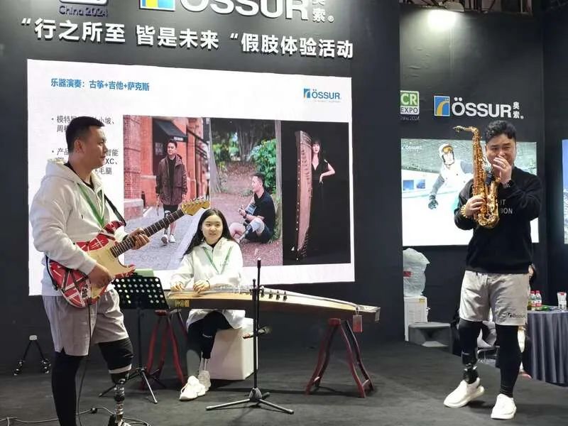 11月28日,2024中國(guó)國(guó)際福祉博覽會(huì)暨中國(guó)國(guó)際康復(fù)博覽會(huì),三名佩戴假肢的表演者上演合奏節(jié)目。劉胤衡/攝
