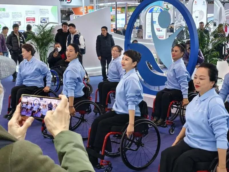 11月28日,2024中國(guó)國(guó)際福祉博覽會(huì)暨中國(guó)國(guó)際康復(fù)博覽會(huì),北京心之源輪椅舞蹈隊(duì)正在表演。劉胤衡/攝