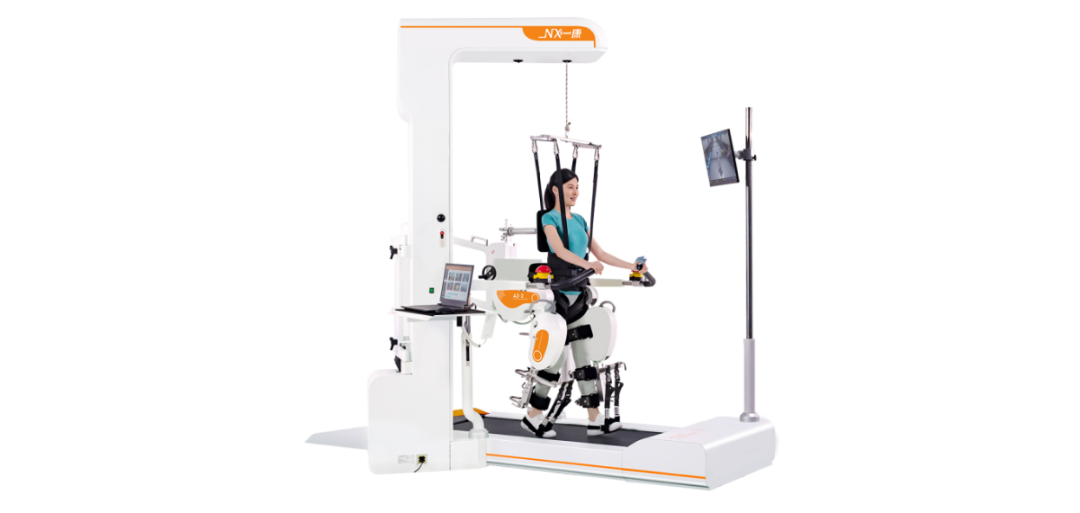 這是一款針對步行功能障礙進(jìn)行高效康復(fù)訓(xùn)練的下肢康復(fù)機(jī)器人。產(chǎn)品由計算機(jī)控制系統(tǒng)、步態(tài)矯正裝置系統(tǒng)、動靜態(tài)減重系統(tǒng)、醫(yī)用跑臺系統(tǒng)以及情景互動訓(xùn)練系統(tǒng)五大模塊組成。它可以使患者在直立體位下通過不斷重復(fù)且軌跡固定的步態(tài)訓(xùn)練,強(qiáng)化正常步態(tài)記憶,促進(jìn)患者本體感覺的輸入與正確運(yùn)動模式的形成,從而加強(qiáng)大腦結(jié)構(gòu)和功能重塑,建立正確的行走模式并有效的鍛煉其相關(guān)肌肉與關(guān)節(jié),加速下肢功能的恢復(fù)。