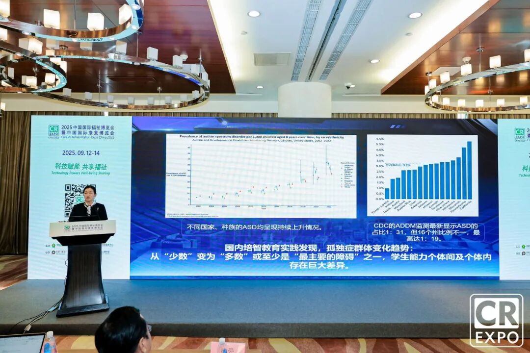 南京特殊教育師范學(xué)院特聘教授徐云作《中國孤獨癥兒童教育的現(xiàn)狀與展望》報告。他指出,自1982年我國學(xué)者首次報道以來,孤獨癥日益受到國家重視近年來,國家連續(xù)出臺各種專項政策,建立康復(fù)救助制度、實施特殊教育提升計劃、推出關(guān)愛行動方案等跨部門全生命周期的支持計劃;推動融合教育成為主流,“應(yīng)隨就隨”,學(xué)前教育倡導(dǎo)免費,義務(wù)教育提高生均經(jīng)費,強化育人為本,義務(wù)教育入學(xué)率超過97%;職業(yè)教育以提升融入社會為導(dǎo)向,不但切實解決就業(yè)難,還與新技術(shù)、新平臺有機(jī)融合,努力培養(yǎng)成為“時代新人”,不少地方因地制宜,就業(yè)率實現(xiàn)或接近100%;國家孤獨癥兒童特殊教育資源中心設(shè)立、孤獨癥兒童教育專業(yè)獲批、家長賦能培訓(xùn)、全社會支持與社會認(rèn)同快速提升,教育模式正從“救助型”向“發(fā)展型”轉(zhuǎn)型。通過早篩干預(yù)、融合教育、社會融合銜接以及AI、VR等數(shù)智技術(shù)應(yīng)用,著力破解“早篩難、入學(xué)難、就業(yè)難”三大痛點。新時代新征程上,在師資培養(yǎng)、資源均衡與社會包容等方面還需要通過合作共享予以突破。