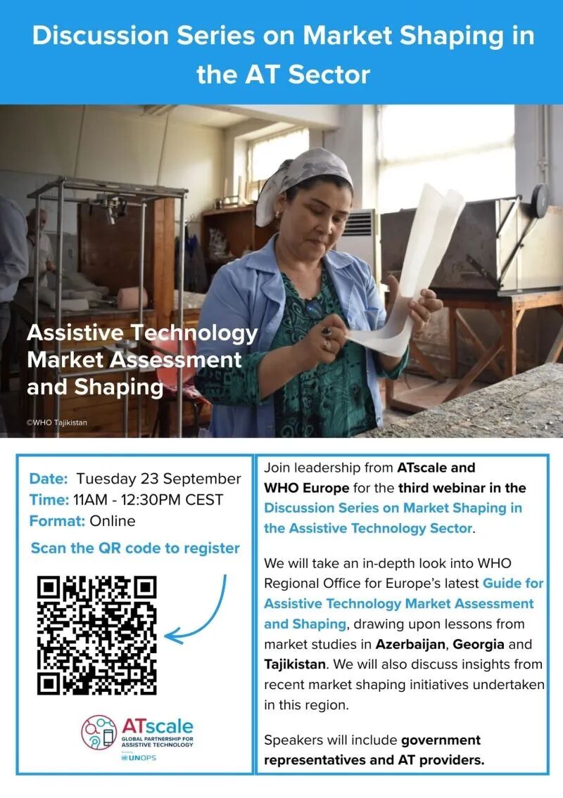 研討會將重點介紹由世衛(wèi)組織歐洲區(qū)域辦事處近期發(fā)布的《輔助技術(shù)市場評估與塑造指南》,并分享塔吉克斯坦和格魯吉亞的市場研究成果。除了對該指南進行深入解讀,研討會還將探討該地區(qū)最新開展的市場研究和市場塑造舉措,并討論這些舉措在其他中低收入國家的應(yīng)用前景。本次研討會也是一個向國際同行學(xué)習(xí)的寶貴機會,與會發(fā)言人將包括各國政府代表、輔助技術(shù)服務(wù)供應(yīng)商,以及 ATscale 和世衛(wèi)組織的高層。