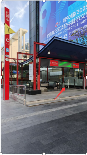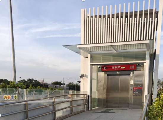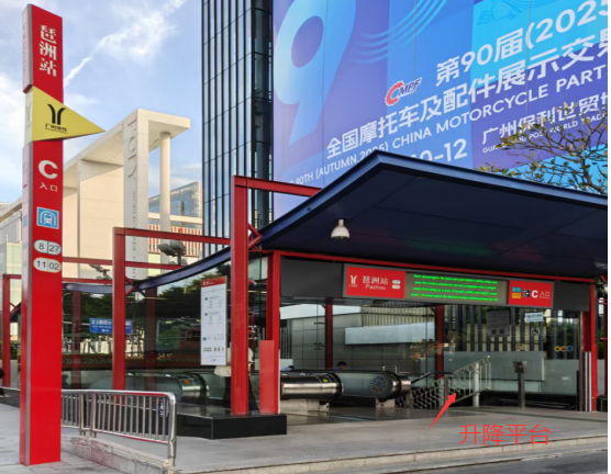 搭乘輪椅升降平臺(tái),從經(jīng)過地下通道,再從琶洲站C出口。