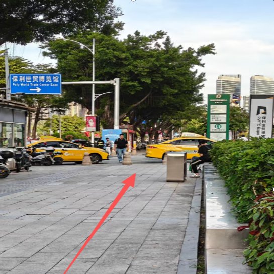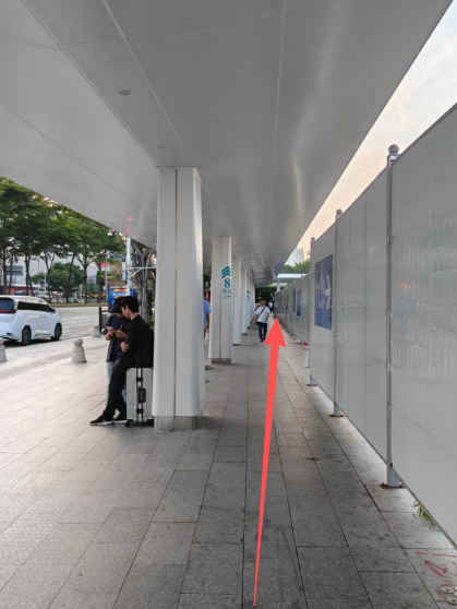 按照箭頭所指方向前行,轉(zhuǎn)右,約前行100米(與前文圖示路線一致),即可抵達(dá)【保利世貿(mào)博覽館E4門】。