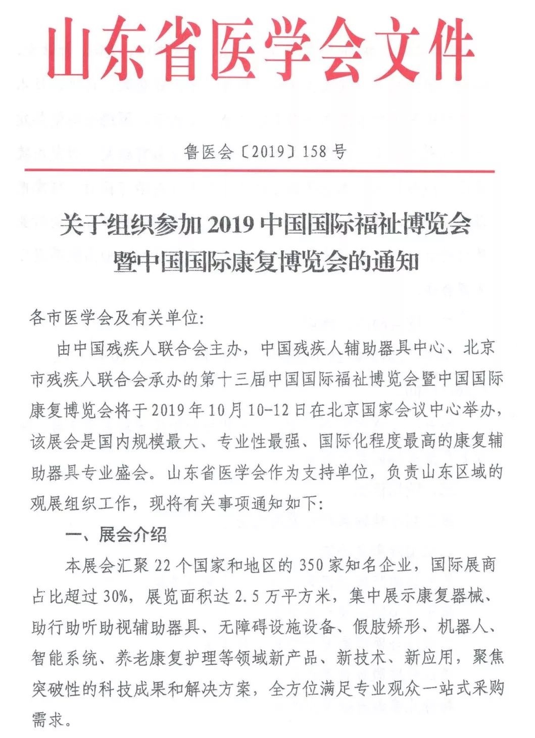 日前,支持單位山東省醫(yī)學會發(fā)布通知,組織號召省內(nèi)各市醫(yī)學會及有關(guān)單位蒞臨福祉博覽會現(xiàn)場參觀交流,以下為通知原文: