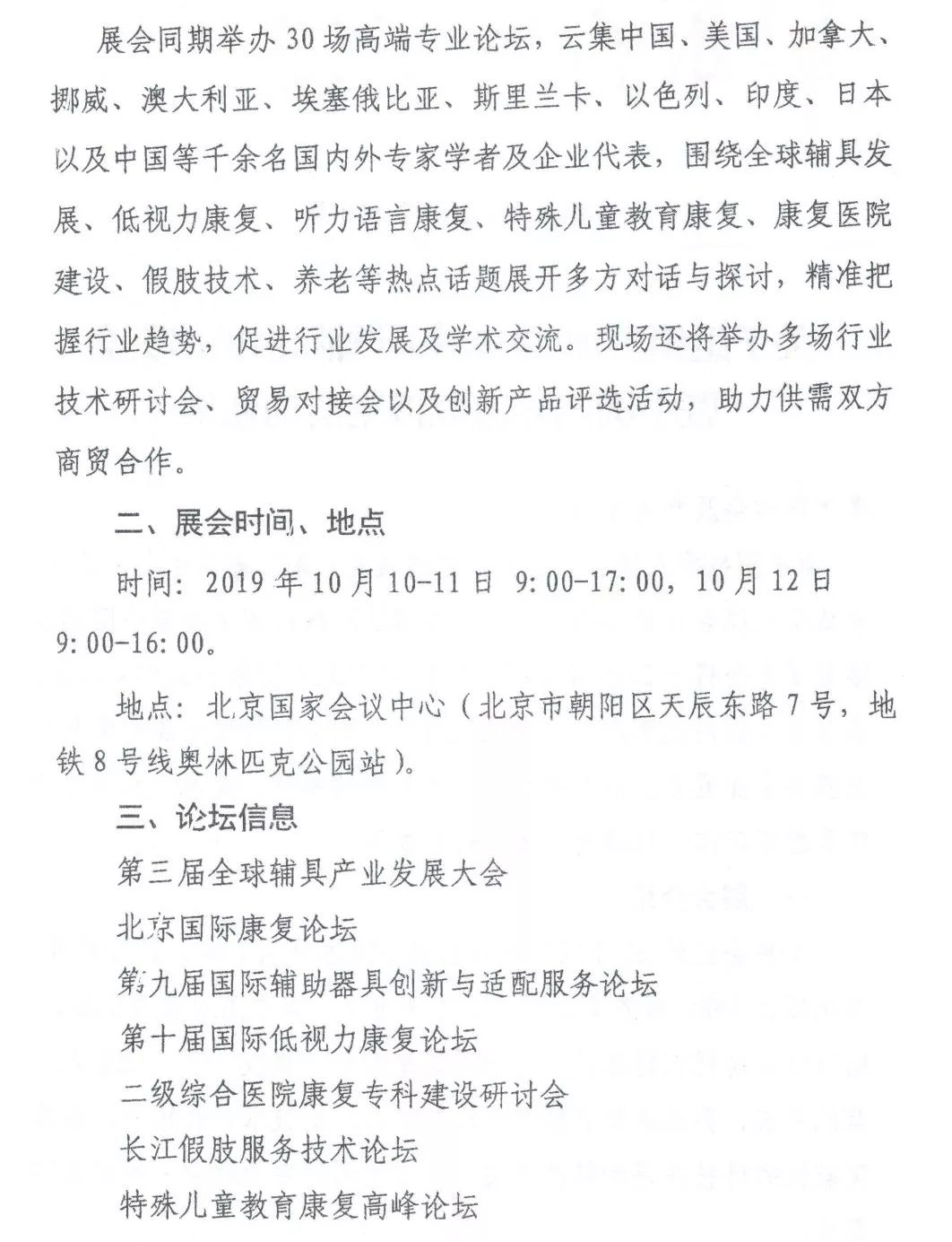 由中國殘聯(lián)主辦,中國殘疾人輔助器具中心、北京市殘疾人聯(lián)合會承辦,廣州市保利錦漢展覽有限公司協(xié)辦的2019中國國際福祉博覽會暨中國國際康復博覽會將于10月10-12日在北京國家會議中心隆重舉辦。