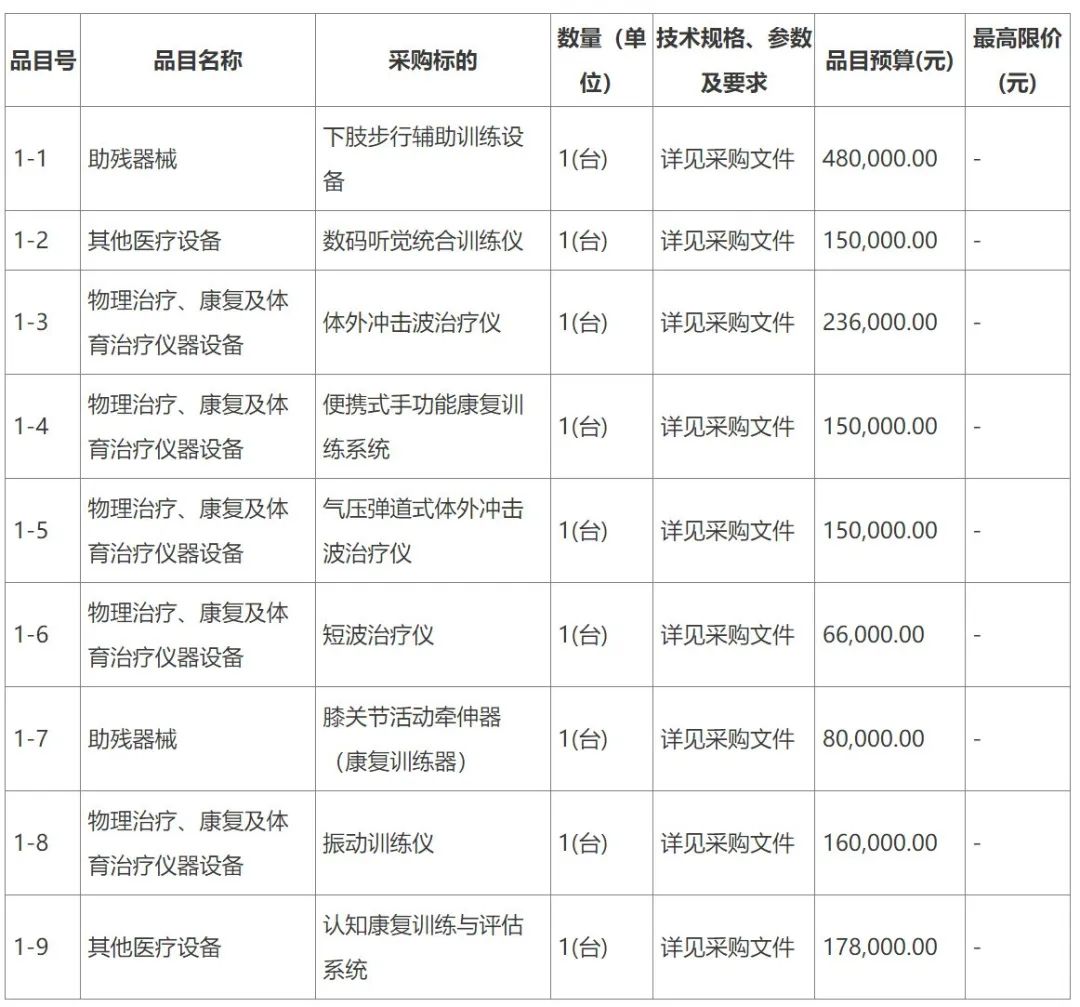 采購(gòu)包1(醫(yī)療康復(fù)設(shè)備購(gòu)置項(xiàng)目(采購(gòu)包2)):