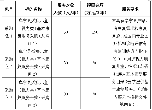 阜寧縣殘疾兒童(視力類)基本康復(fù)服務(wù)采購采購公告