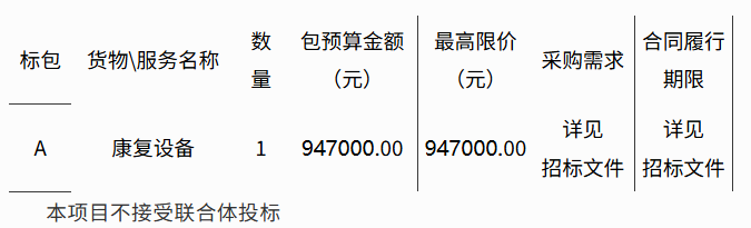 采購需求:康復(fù)設(shè)備購置,具體詳見“第四部分采購需求 ”。