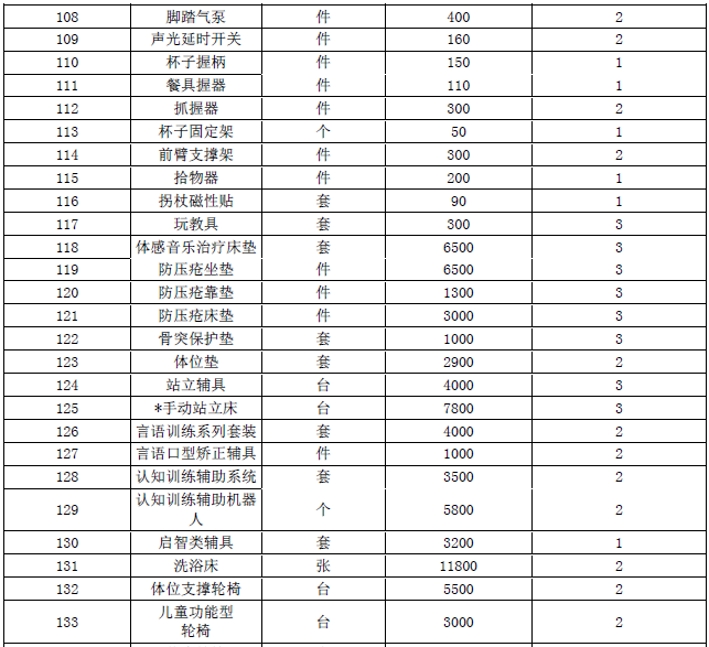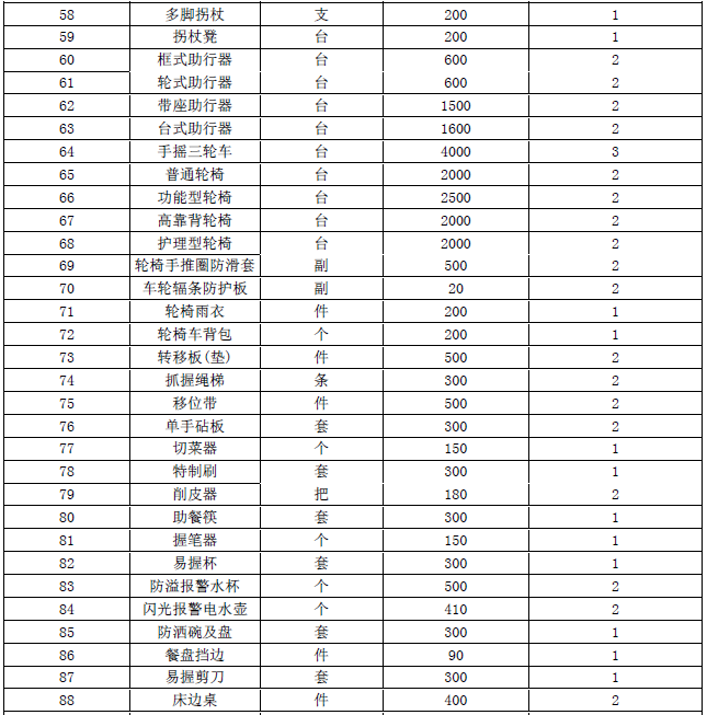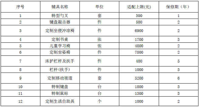 在詳細(xì)分項(xiàng)報(bào)價(jià)清單中,供應(yīng)商提供第一個(gè)表格中任意一輔具產(chǎn)品必須提供醫(yī)療器械經(jīng)營(yíng)許可證或第二類醫(yī)療器械經(jīng)營(yíng)備案證;僅提供第二個(gè)表格中輔具產(chǎn)品則無需醫(yī)療器械經(jīng)營(yíng)許可證或第二類醫(yī)療器械經(jīng)營(yíng)備案證。