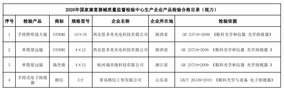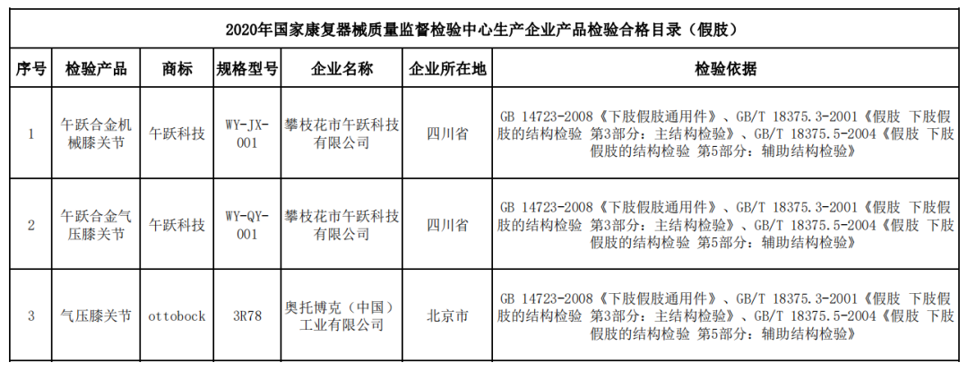 日前,中國殘疾人輔助器具中心公布了《國家康復(fù)器械質(zhì)量監(jiān)督檢驗中心 2020年生產(chǎn)企業(yè)產(chǎn)品檢驗合格目錄》,目錄包含假肢、肢體助行、聽力、視力、康復(fù)訓(xùn)練器械、生活自助及輔助類共6類產(chǎn)品。
