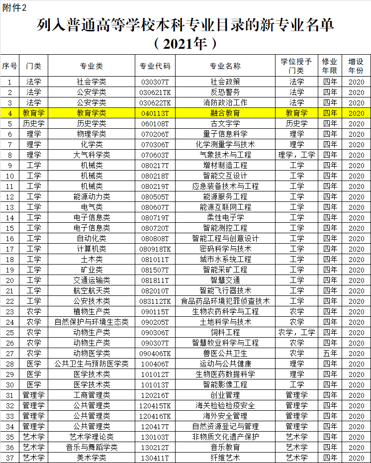 2.列入普通高等學(xué)校本科專業(yè)目錄的新專業(yè)名單(2021年)