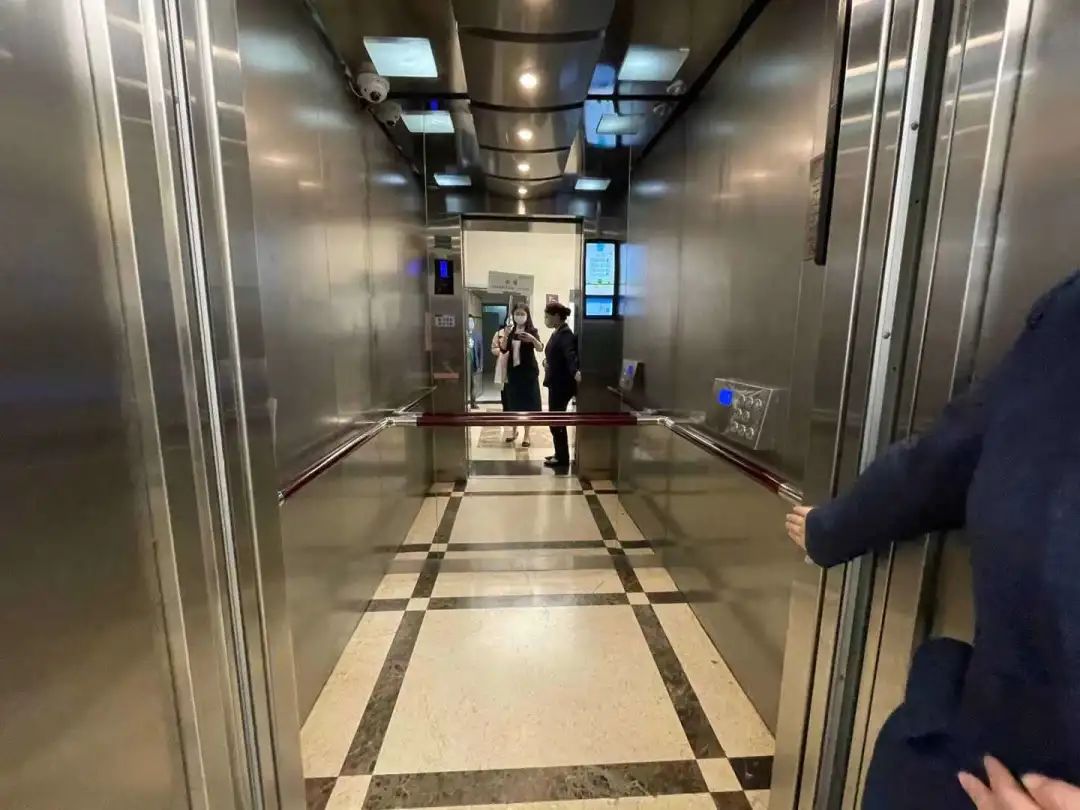 這是一臺(tái)無(wú)障礙電梯,扶手及按鈕的高度恰到好處,門的寬度讓輪椅人士也能輕松通行。