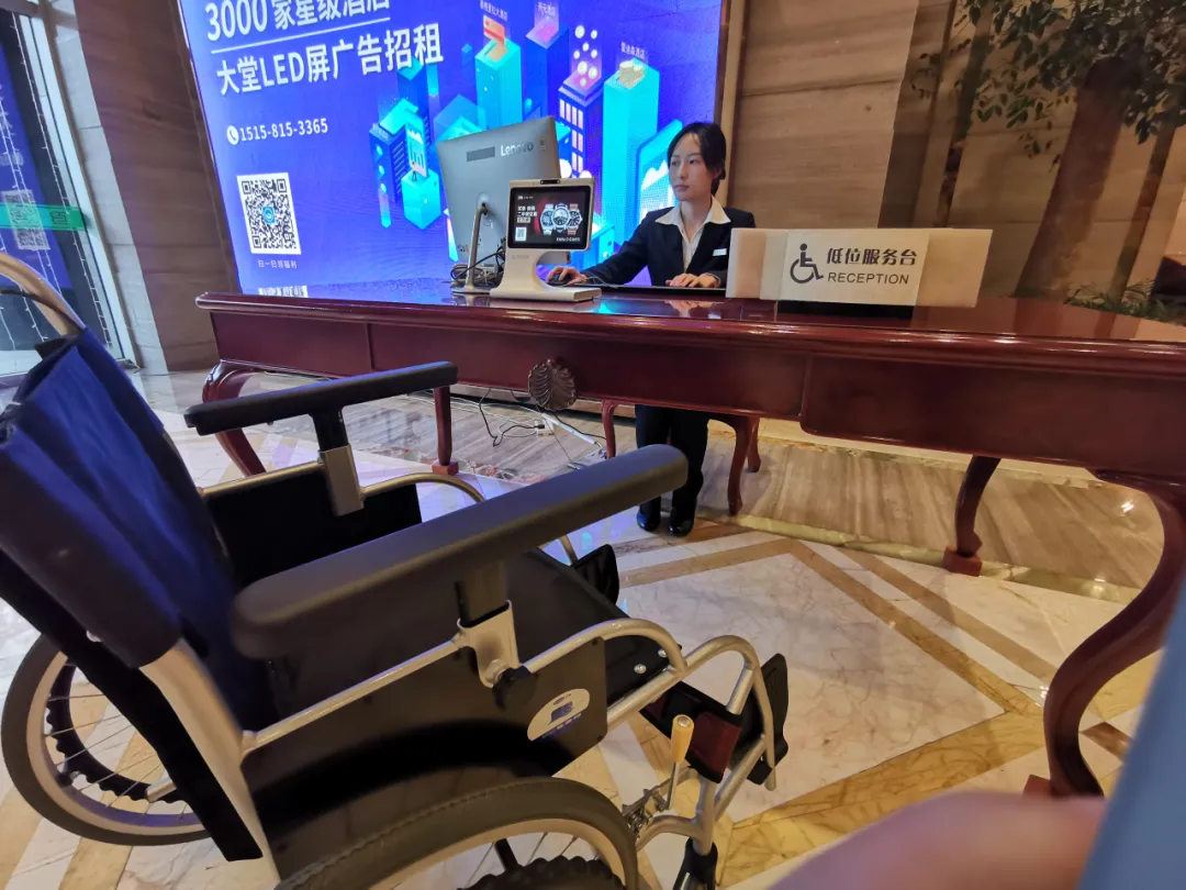 ▲杭州某飯店的低位服務(wù)臺(tái),專為殘障人士設(shè)置