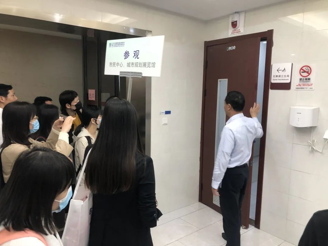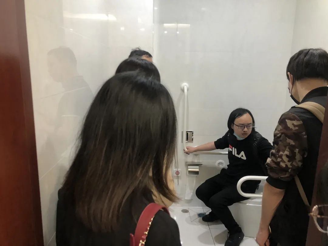 ▲ 參觀團(tuán)體驗(yàn)無(wú)障礙衛(wèi)生間