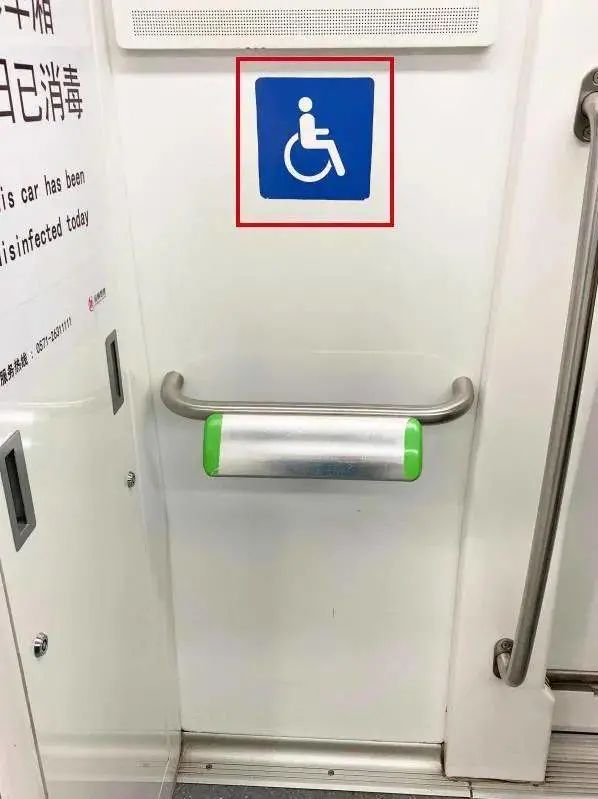 殘疾人專用靠扶位:為保障輪椅人士的乘車安全,每節(jié)列車車廂均設(shè)有專用靠扶位,并在對(duì)應(yīng)的屏蔽門設(shè)置無(wú)障礙標(biāo)識(shí)。