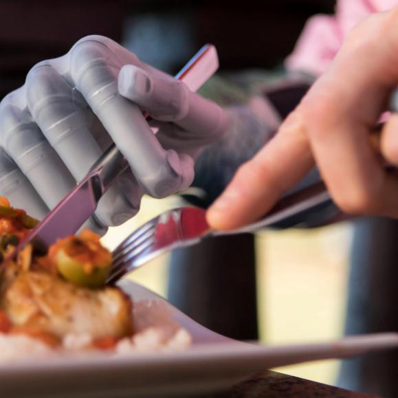 ●產(chǎn)品簡介:Touch Bionics通過應用程序對預設動作進行編程,例如握住杯子,在選定后佩戴者就可通過彎曲肌肉,由神經(jīng)向假肢發(fā)出電信號來握住杯子,甚至可以使用手指來操作智能手機和平板電腦。