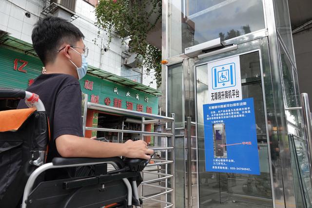 按下“呼叫鍵”,梯門緩緩打開,無障礙升降平臺將殘障人士小方送上過街天橋。“使用體驗很好!”作為無障礙電梯的第一位乘客,小方豎起大拇指,在試用意見表上填上了“滿意”。