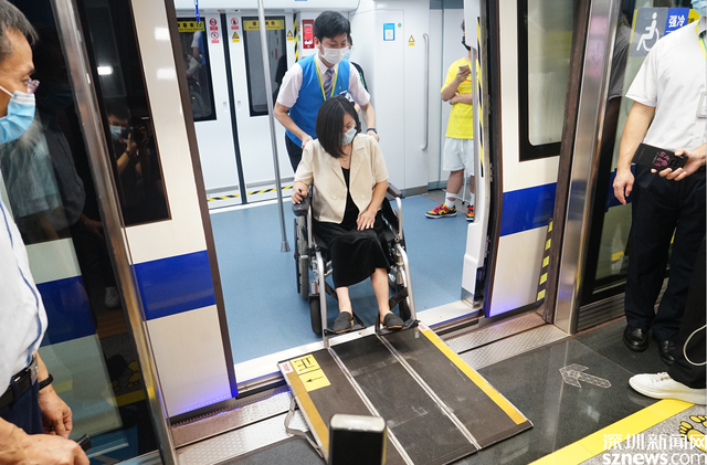 在深圳華新地鐵站,張永安重點(diǎn)查看地鐵站的無(wú)障礙通道、無(wú)障礙洗手間、輪椅進(jìn)出車(chē)廂的踏板等無(wú)障礙設(shè)施,了解無(wú)障礙設(shè)施是否真正發(fā)揮了作用,是否符合9月1日生效的《深圳經(jīng)濟(jì)特區(qū)無(wú)障礙城市建設(shè)條例》。