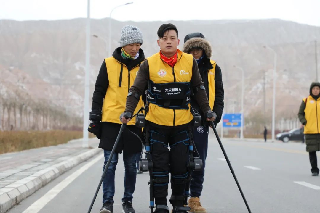 身著這款新一代大艾Ai外骨骼機(jī)器人的,是患有截癱的殘疾人優(yōu)秀代表邵海朋。2017年,邵海朋因高空墜落導(dǎo)致截癱,雙下肢失去行走功能,只能借助輪椅出行。面對不幸,邵海朋表現(xiàn)出堅(jiān)韌而積極樂觀的品格,一直堅(jiān)持使用大艾外骨骼機(jī)器人康復(fù)訓(xùn)練。2018年,邵海朋參加“科技助殘”穿越“一帶一路”機(jī)器人行走馬拉松公益挑戰(zhàn)賽,以9天、26小時(shí)的好成績穿戴外骨骼機(jī)器人走完全程馬拉松,打破了國外保持的15天走完機(jī)器人行走馬拉松的世界紀(jì)錄,借助科技的力量,實(shí)現(xiàn)自我超越,創(chuàng)造屬于中國人的奇跡與歷史!期間從新疆克州、西安、北京、南京跨越5000多公里,克服帕米爾高原嚴(yán)寒風(fēng)雪、長時(shí)間行走身體不適等諸多困難,展現(xiàn)了中國殘障人士自強(qiáng)不息的奮斗精神。2019年,通過不斷的康復(fù)努力,邵海朋已經(jīng)能在拐杖輔助下重新行走。