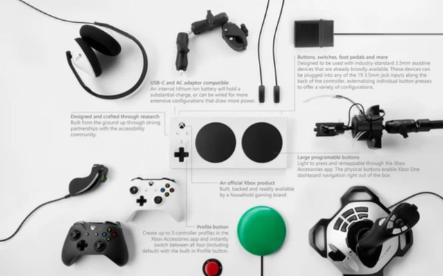 “為了一切玩家”(Gaming for Everyone)是2015年微軟所提出的口號,在編程馬拉松大會上,幾名微軟員工設(shè)計了一套為殘疾人制作的無障礙游戲控制項(xiàng)目,而這很快打動了微軟的高層。一段時間后,他們正式推出了Xbox Adaptive Controller無障礙控制器,這能讓那些無法正常使用鍵盤或手柄的玩家也能通過自己的改造,利用自定義按鍵進(jìn)行游戲。