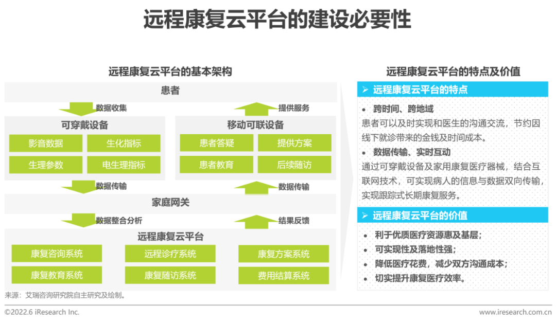 遠(yuǎn)程康復(fù)是指以專業(yè)遠(yuǎn)程康復(fù)系統(tǒng)為基礎(chǔ),持續(xù)升級(jí)相關(guān)技術(shù),配合智能的居家康復(fù)設(shè)備,意在能夠大幅提高患者的活動(dòng)能力和肢體控制能力,有效進(jìn)行康復(fù)延續(xù),減少功能惡化的危險(xiǎn)。未來(lái),隨著民眾康復(fù)意識(shí)的覺(jué)醒以及新興技術(shù)的進(jìn)一步發(fā)展,遠(yuǎn)程康復(fù)將持續(xù)推動(dòng)康復(fù)上門、康復(fù)進(jìn)家進(jìn)社區(qū),還將發(fā)展出康復(fù)互聯(lián)網(wǎng)醫(yī)院等多種形式,彰顯康復(fù)醫(yī)療幫助患者回歸家庭、回歸社會(huì)的宗旨。結(jié)合目前我國(guó)康復(fù)醫(yī)療資源短缺的實(shí)際情況,遠(yuǎn)程康復(fù)的普及是一種必然的發(fā)展趨勢(shì),相比于傳統(tǒng)的康復(fù)方式而言,遠(yuǎn)程康復(fù)將作為一種補(bǔ)充和延續(xù)引領(lǐng)我國(guó)康復(fù)醫(yī)療行業(yè)新發(fā)展。