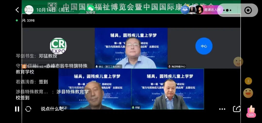 由浙江工業(yè)大學(xué)心理與輔具技術(shù)研究所、南京特殊教育師范學(xué)院特殊教育學(xué)院、北京市海淀區(qū)特殊教育研究與指導(dǎo)中心、中國國際福祉博覽會(huì)暨中國國際康復(fù)博覽會(huì)組委會(huì)聯(lián)合主辦的第一屆“輔具進(jìn)校園”高峰論壇于2022年10月14日和21日成功線上舉辦,共吸引全國5萬余名普特教育工作者參加。