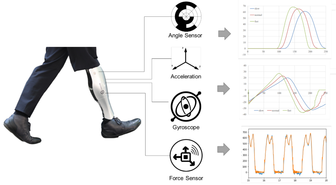 現(xiàn)在,Bio Leg智能動(dòng)力假肢安裝了多個(gè)傳感器,它不受地點(diǎn)或時(shí)間的限制,可以隨時(shí)搜集假肢用戶的運(yùn)動(dòng)數(shù)據(jù)。并且將搜集到的運(yùn)動(dòng)數(shù)據(jù)用于康復(fù)訓(xùn)練和步態(tài)分析,讓康復(fù)可視化,為假肢技師、理療師和假肢用戶提供參考,加速康復(fù)訓(xùn)練過程。