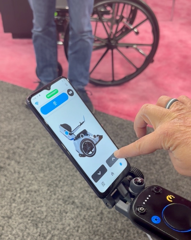 爬樓時BRO會把椅子抬到第一個臺階上,讓用戶控制接下來的升降過程。此時,與輪椅配對的智能手機會顯示輪椅攝像頭(攝像頭為選裝)的圖像,而用戶只需要向前或向后拉動操縱桿,就能輕松完成爬樓梯動作。由于BRO配備有傳感器,它可以自行測量環(huán)境并識別樓梯的末端。