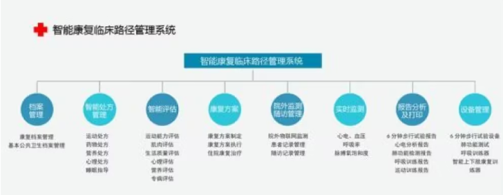 智能康復路徑管理系統(tǒng)主要面向心肺康復信息管理。心肺康復管理系統(tǒng)是一個專業(yè)的數(shù)字系統(tǒng),可以掌握患者的整個康復數(shù)據(jù)??祻凸芾硐到y(tǒng)與康復設備相結合,可以實現(xiàn)康復數(shù)據(jù)的電子化和康復過程的標準化。同時,系統(tǒng)可以智能分析數(shù)據(jù)并生成報告。醫(yī)生根據(jù)報告為患者制定個性化的治療方案,促進患者康復,實現(xiàn)精準醫(yī)療。