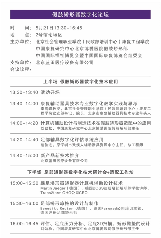 為推動康復(fù)輔具事業(yè)高質(zhì)量發(fā)展,中國國際福祉博覽會暨中國國際康復(fù)博覽會組委會聯(lián)合北京社會管理職業(yè)學(xué)院(民政部培訓(xùn)中心)康復(fù)工程學(xué)院、中國康復(fù)研究中心北京博愛醫(yī)院假肢矯形部舉辦假肢矯形器數(shù)字化論壇活動,詳情如下: