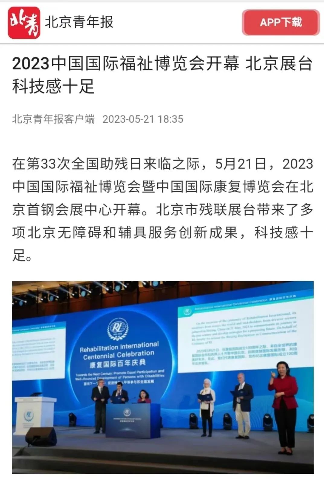 在第33次全國(guó)助殘日來(lái)臨之際,5月21日,2023中國(guó)國(guó)際福祉博覽會(huì)暨中國(guó)國(guó)際康復(fù)博覽會(huì)在北京首鋼會(huì)展中心開幕。北京市殘聯(lián)展臺(tái)帶來(lái)了多項(xiàng)北京無(wú)障礙和輔具服務(wù)創(chuàng)新成果,科技感十足。