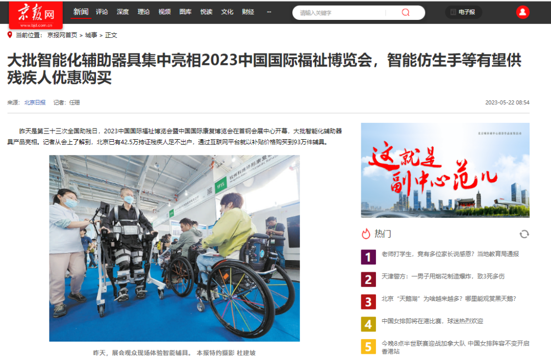 由中國(guó)殘疾人聯(lián)合會(huì)主辦,中國(guó)殘疾人輔助器具中心、北京市殘疾人聯(lián)合會(huì)承辦,廣州市保利錦漢展覽有限公司協(xié)辦的2023中國(guó)國(guó)際福祉博覽會(huì)暨中國(guó)國(guó)際康復(fù)博覽會(huì),于5月21日至5月23日在北京首鋼會(huì)展中心圓滿舉辦。以下是北京日?qǐng)?bào)報(bào)道詳情: