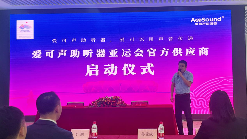 愛可聲助聽器董事長李鵬李總上臺致辭,表示愛可聲助聽器有幸成為本次體育賽事-杭州亞運(yùn)會的官方供應(yīng)商,這是對我們品牌多年來持續(xù)努力的認(rèn)可與激勵(lì)。我們深感責(zé)任重大,因此愛可聲將以最優(yōu)質(zhì)的助聽產(chǎn)品和服務(wù),助力本次亞運(yùn)會的順利舉辦。并且向參與杭州亞運(yùn)會籌備和組織工作的各級領(lǐng)導(dǎo)、組委會和志愿者表示衷心的感謝!