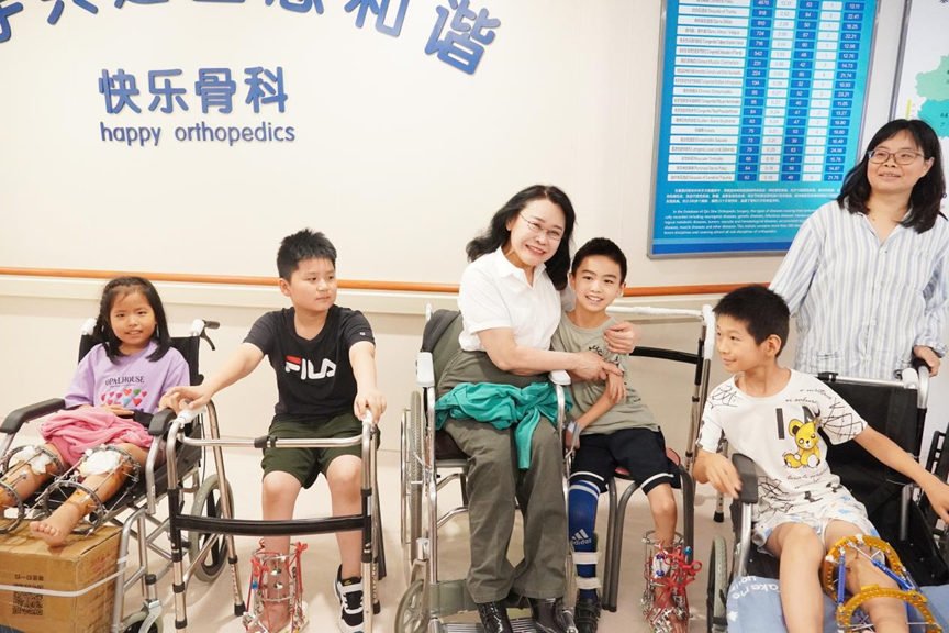 圖為張海迪看望、鼓勵正在術(shù)后康復(fù)的孩子