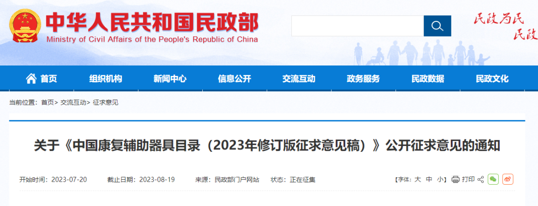 關(guān)于《中國(guó)康復(fù)輔助器具目錄(2023年修訂版征求意見(jiàn)稿)》公開(kāi)征求意見(jiàn)的通知