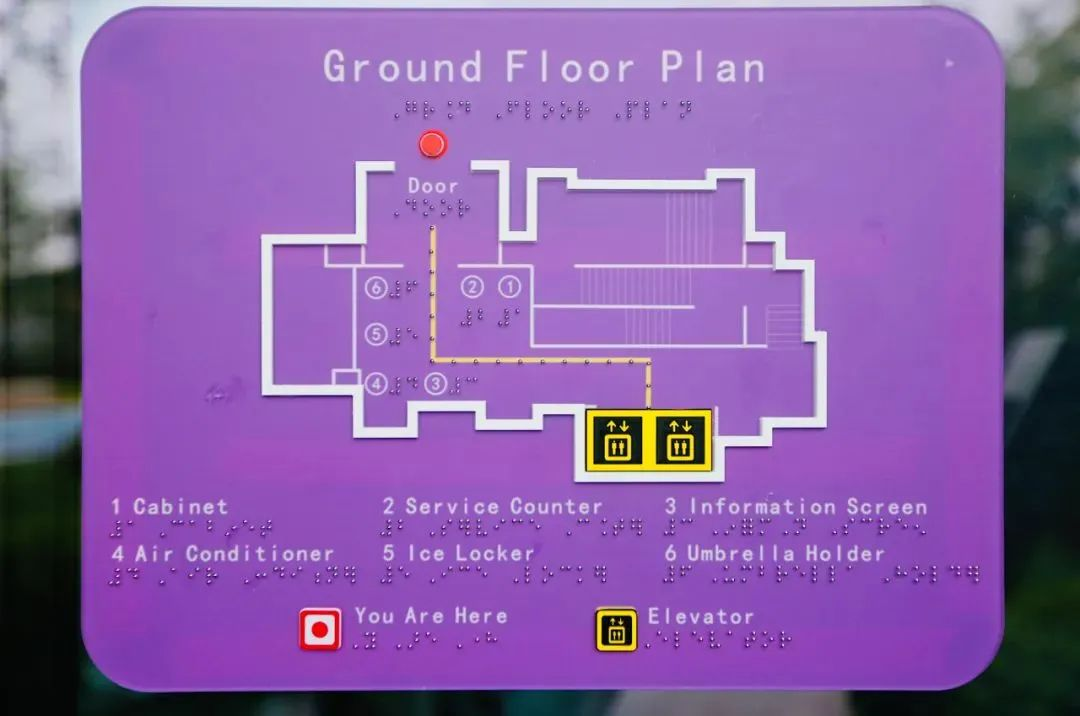 杭州亞殘運村中還有超多無障礙設(shè)施和環(huán)境細(xì)節(jié)。盲道一直鋪設(shè)到公寓口,公寓入口的指示標(biāo)識處就有盲文,電梯的所有按鈕也設(shè)置了盲文。