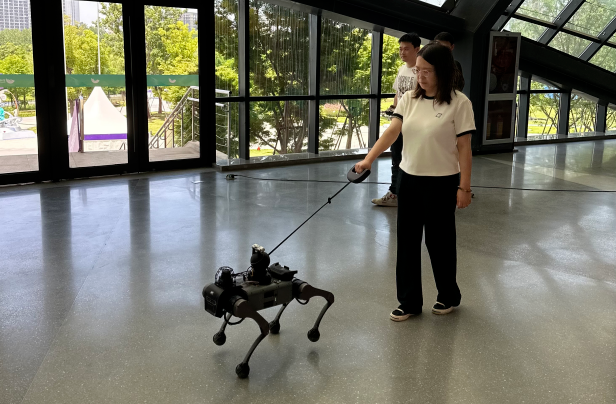 在拱墅運河體育公園體育場,正式比賽期間可以在場館內(nèi)看到兩名特殊“志愿者”——“電子導(dǎo)盲犬”小西和小湖。它們由西湖大學(xué)機器智能實驗室研發(fā),主要為場館內(nèi)的視障群體提供導(dǎo)航服務(wù)。