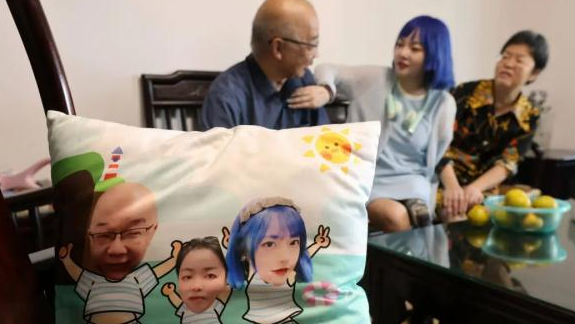 ▲翁忻怡愛家人,枕頭印有她和家人的卡通形象。