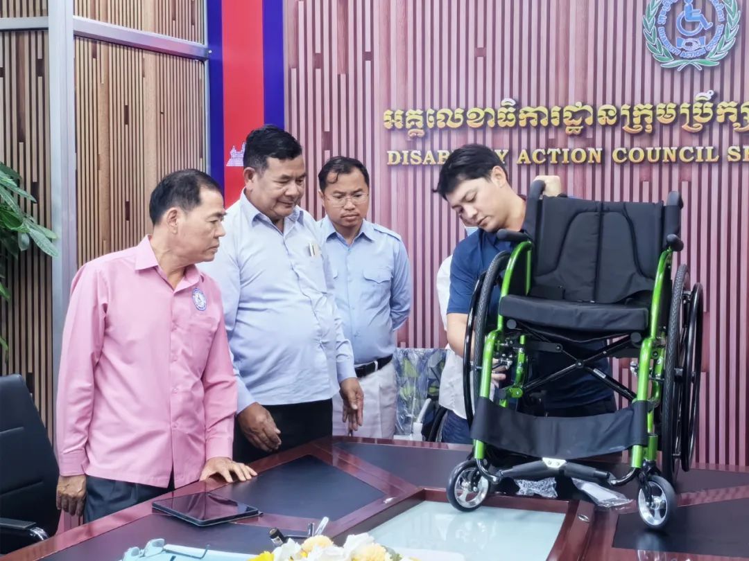 在了解柬埔寨和老撾輔助器具基本狀況和需求的基礎(chǔ)上,輔助器具中心結(jié)合國(guó)內(nèi)輔助器具生產(chǎn)情況,確定了捐贈(zèng)的輔助器具產(chǎn)品類別及技術(shù)參數(shù),向國(guó)內(nèi)輔助器具生產(chǎn)企業(yè)采購(gòu)了1300余件輔助器具用以援助兩國(guó)。2023年11月,輔助器具中心派遣工作組赴老撾、柬埔寨,舉行輔助器具捐贈(zèng)儀式。老撾、柬埔寨合作部委高度重視中方捐贈(zèng)。老撾勞動(dòng)和社會(huì)福利部殘疾人、老年人政策司副司長(zhǎng),柬埔寨社會(huì)事務(wù)、退伍軍人、青年康復(fù)部部長(zhǎng)兼殘疾行動(dòng)委員會(huì)主席分別出席捐贈(zèng)儀式,中國(guó)駐柬埔寨大使館林瑞華參贊出席活動(dòng)。