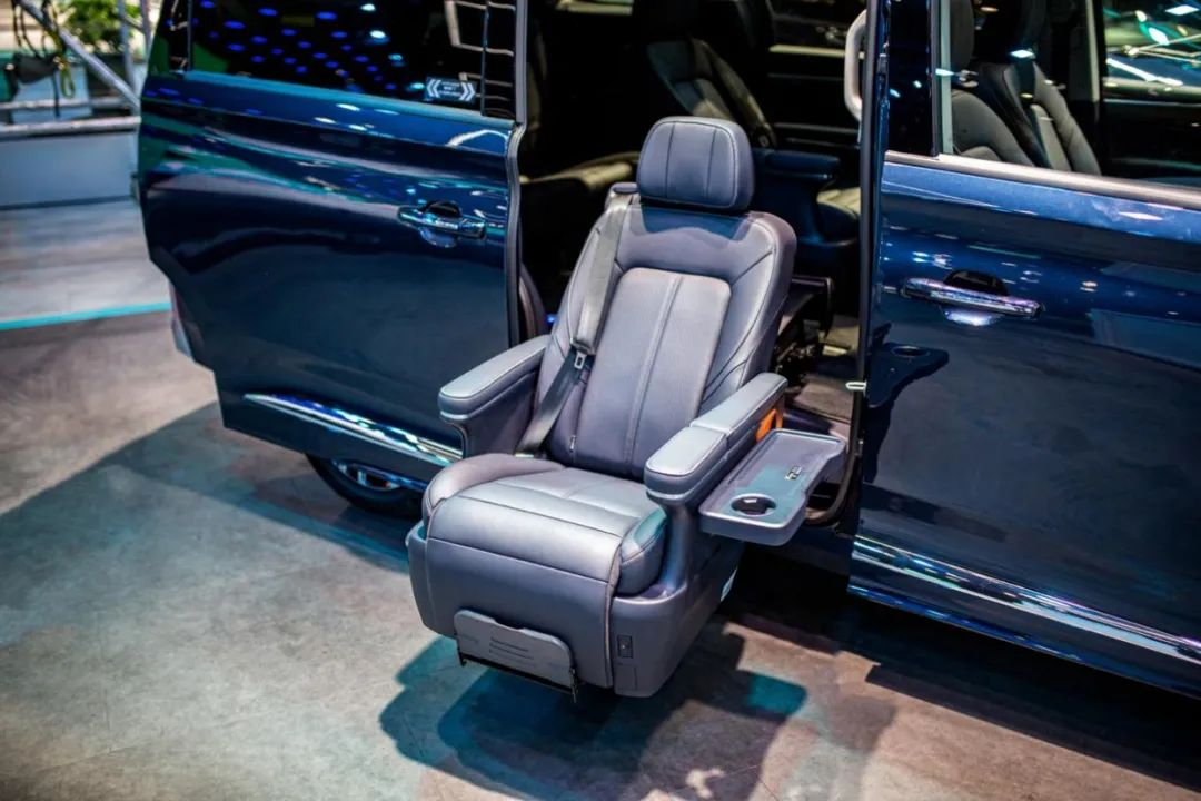 廣汽傳祺M8宗師系列福祉版,第二排座椅可以旋轉,推出到車外,并降低座椅高度,方便乘員便捷上下車。