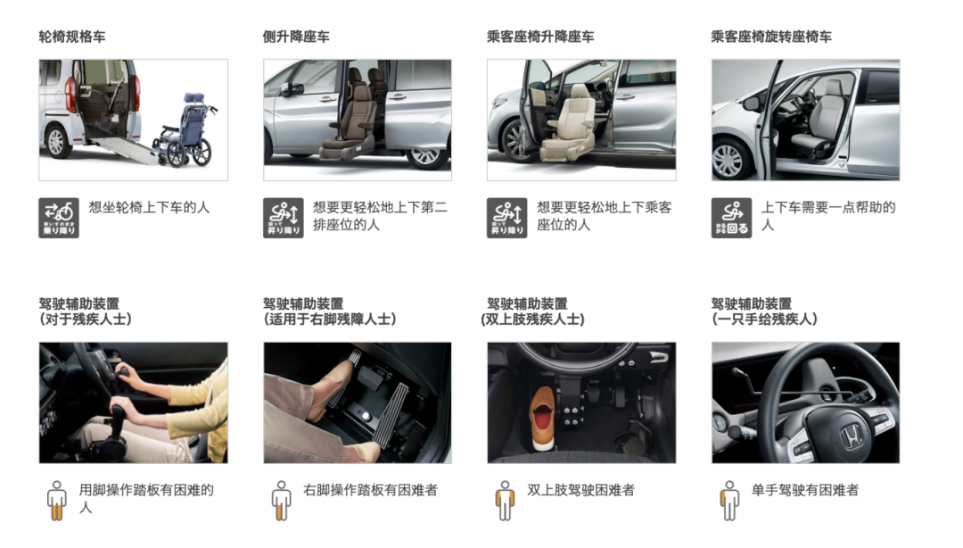 為了解決上下車難題,實現(xiàn)出行自由,豐田、本田、別克、傳祺、五菱、Kenguru等國內外車企,紛紛推出各類福祉車。