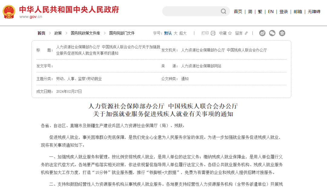 人社部、中國(guó)殘聯(lián)聯(lián)合印發(fā)通知