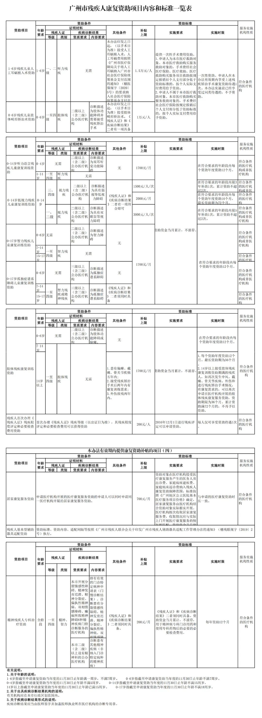 廣州市戶籍并符合下列條件之一的殘疾障礙者,納入康復資助對象范圍。