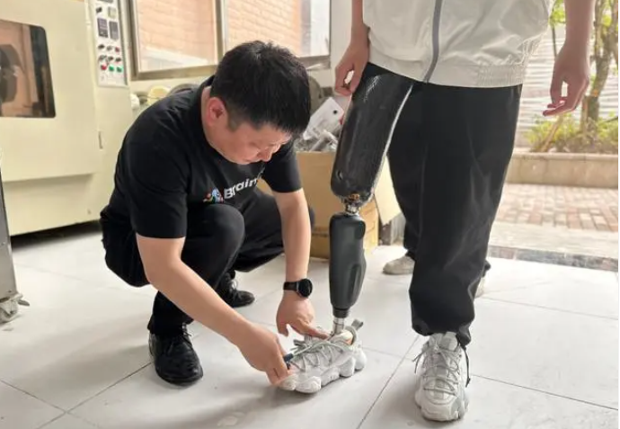 近日,在貴州省康復(fù)醫(yī)院“科技改變生活·輔具支撐夢(mèng)想——優(yōu)秀殘疾人代表智能假肢裝配公益活動(dòng)”現(xiàn)場(chǎng),貴州省殘疾人游泳隊(duì)隊(duì)員陳潔在工作人員的幫助下穿上了新適配的智能仿生假肢,開(kāi)始了適應(yīng)訓(xùn)練。據(jù)了解,本次公益活動(dòng)是該醫(yī)院2023年度假肢矯形器裝配康復(fù)救助項(xiàng)目的一部分,計(jì)劃讓14位優(yōu)秀殘疾人通過(guò)適配智能仿生假肢,獲得更為強(qiáng)大的生活能力與職業(yè)潛能。