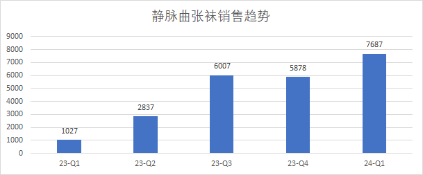 在瞄準(zhǔn)即時零售日常需求,覆蓋日常使用場景方面,康復(fù)之家選擇了靜脈曲張襪這一典型日常備貨。在2023年第二季度,康復(fù)之家即開始布局靜脈曲張襪產(chǎn)品,在價格帶上做了補(bǔ)充,同時擴(kuò)大鋪貨范圍,該品類銷售同樣大幅增長,24年第一季度體量已達(dá)到去年同期的7.5倍,獲得了即時零售業(yè)務(wù)的極大成功。