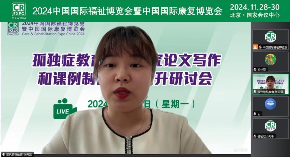 《現(xiàn)代特殊教育》編輯部編輯張?zhí)旎蹏@論文的總體介紹與寫作要求展開分析,她提到中國教育學會特殊教育分會智障教育專委會等十家單位,在2024年3月27日開啟了第一屆孤獨癥教育教學研究論文征集?,F(xiàn)代特殊教育編輯部也特設(shè)了孤獨癥教育欄目,希望通過這樣的方式集思廣益、分享經(jīng)驗,共同研究孤獨癥教育的重要課題。