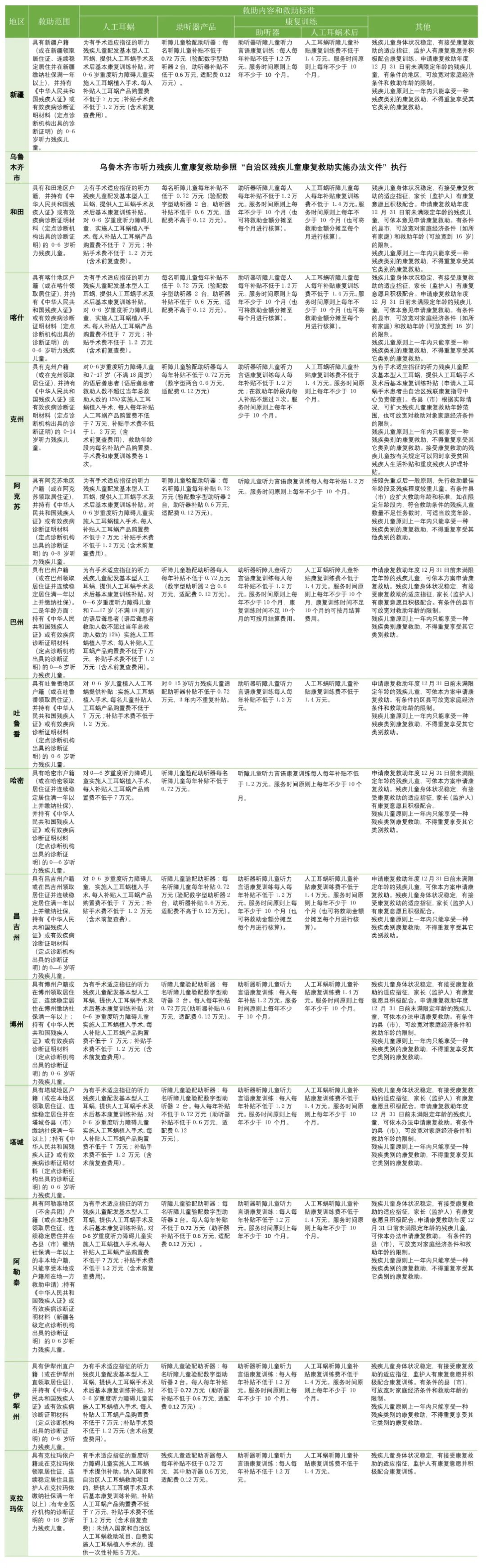 具有人工耳蝸植入適應(yīng)指征的未滿7周歲聽力殘疾、多重殘疾(含聽力殘疾)兒童,未享受免費(fèi)配置基本型人工耳蝸和基本醫(yī)療保險(xiǎn)支付,自行接受人工耳蝸植入的,在最高70000元標(biāo)準(zhǔn)內(nèi)按實(shí)享受一次性補(bǔ)貼,每人限補(bǔ)貼人工耳蝸1臺(tái)。18周歲前植入人工耳蝸的低保低邊家庭殘疾兒童,術(shù)后8年以上需升級(jí)體外言語(yǔ)處理器(聲音處理器、音頻處理器)的,在最高30000元標(biāo)準(zhǔn)內(nèi)按實(shí)享受一次性補(bǔ)貼 。