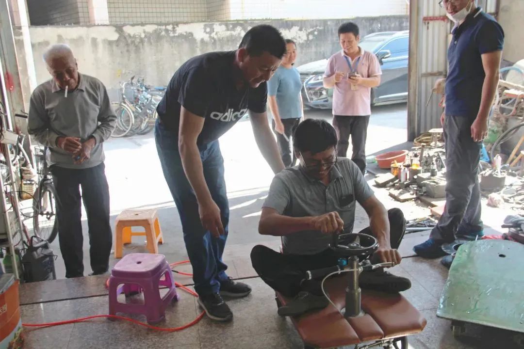 這種低位助力車的坐墊與地面的距離只有幾十厘米,設(shè)置手搖輪等傳動裝置控制方向與移動。適配該輔助器具后,林阿伯不必他人攙扶即可自行使用,且滿足了他的工作需要,方便維修。