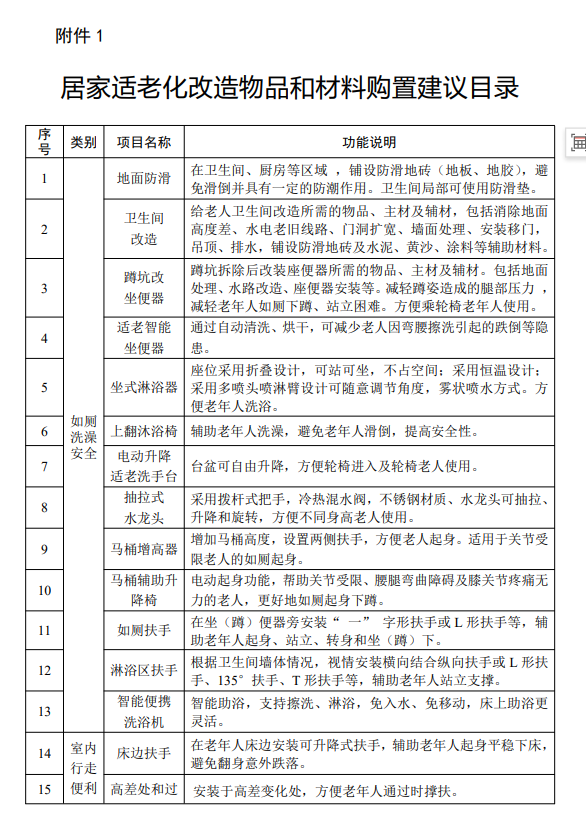 附件1:居家適老化改造物品和材料購(gòu)置建議目錄