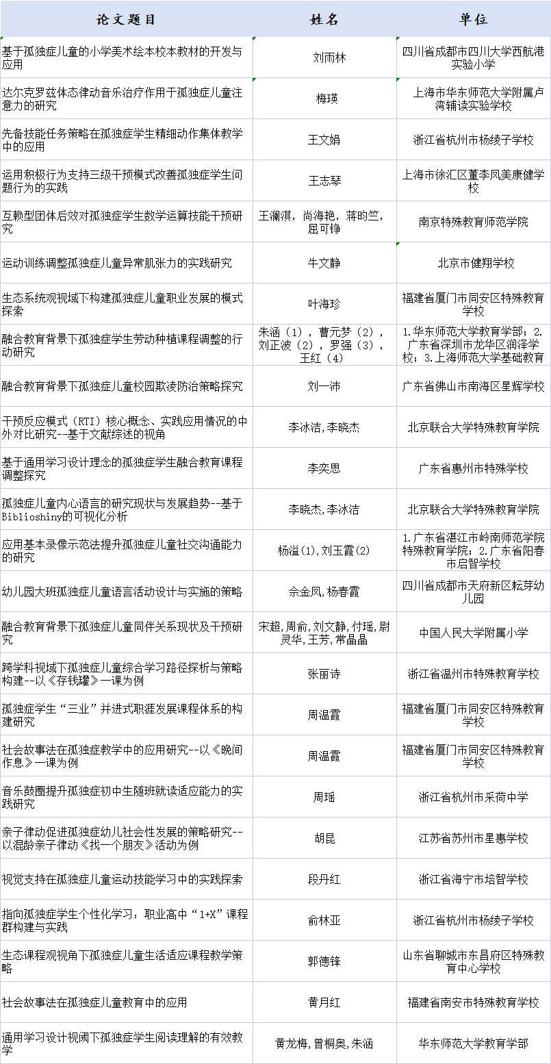 本次交流會(huì)暨結(jié)果發(fā)布儀式是2024中國(guó)國(guó)際福祉博覽會(huì)暨中國(guó)國(guó)際康復(fù)博覽會(huì)的一項(xiàng)重要內(nèi)容,由中國(guó)教育學(xué)會(huì)特殊教育分會(huì)智障教育專委會(huì)、殘疾人事業(yè)發(fā)展研究會(huì)融合教育專委會(huì)、江蘇教育報(bào)刊總社現(xiàn)代特殊教育編輯部、南京特殊教育師范學(xué)院特殊教育學(xué)院、北京教育科學(xué)研究院北京市特殊教育研究指導(dǎo)中心、北京市健翔學(xué)校、北京市海淀區(qū)特殊教育研究與指導(dǎo)中心、杭州市楊綾子學(xué)校、杭州市上城區(qū)特殊資源中心等聯(lián)合舉辦。本屆優(yōu)秀論文與課例征集活動(dòng)得到全國(guó)27個(gè)省200多家單位的支持,征集到近400篇論文、100多個(gè)課例。經(jīng)相關(guān)專家遴選,25篇優(yōu)秀論文、54篇?jiǎng)?chuàng)新論文,30節(jié)優(yōu)秀課例、24節(jié)創(chuàng)新課例脫穎而出,展現(xiàn)了孤獨(dú)癥兒童教育教學(xué)研究的最新成果,體現(xiàn)了廣大特殊教育工作者堅(jiān)持黨的教育方針、落實(shí)立德樹(shù)人根本任務(wù)、積極參與孤獨(dú)癥兒童教育教學(xué)改革的新探索和新實(shí)踐。